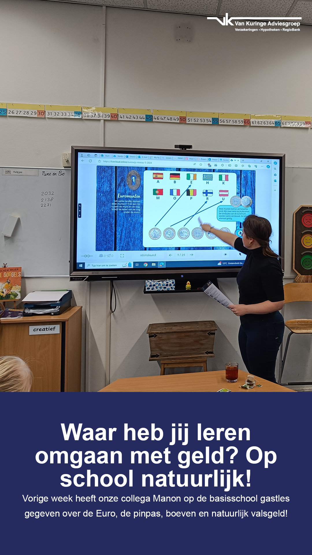 Goed omgaan met geld. Het klinkt zo vanzelfsprekend, maar dat is het niet. Waar heb jij leren omgaan met geld?Als lokale ondernemer en Zelfstandig adviseur van de RegioBank vinden wij het belangrijk ons steentje hieraan bij te dragen. Daarom geven we jaarlijks gastlessen op de basisschool.